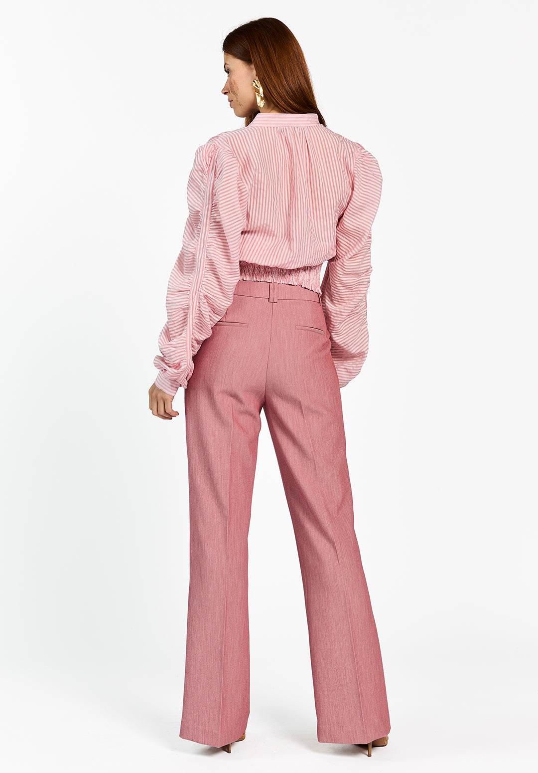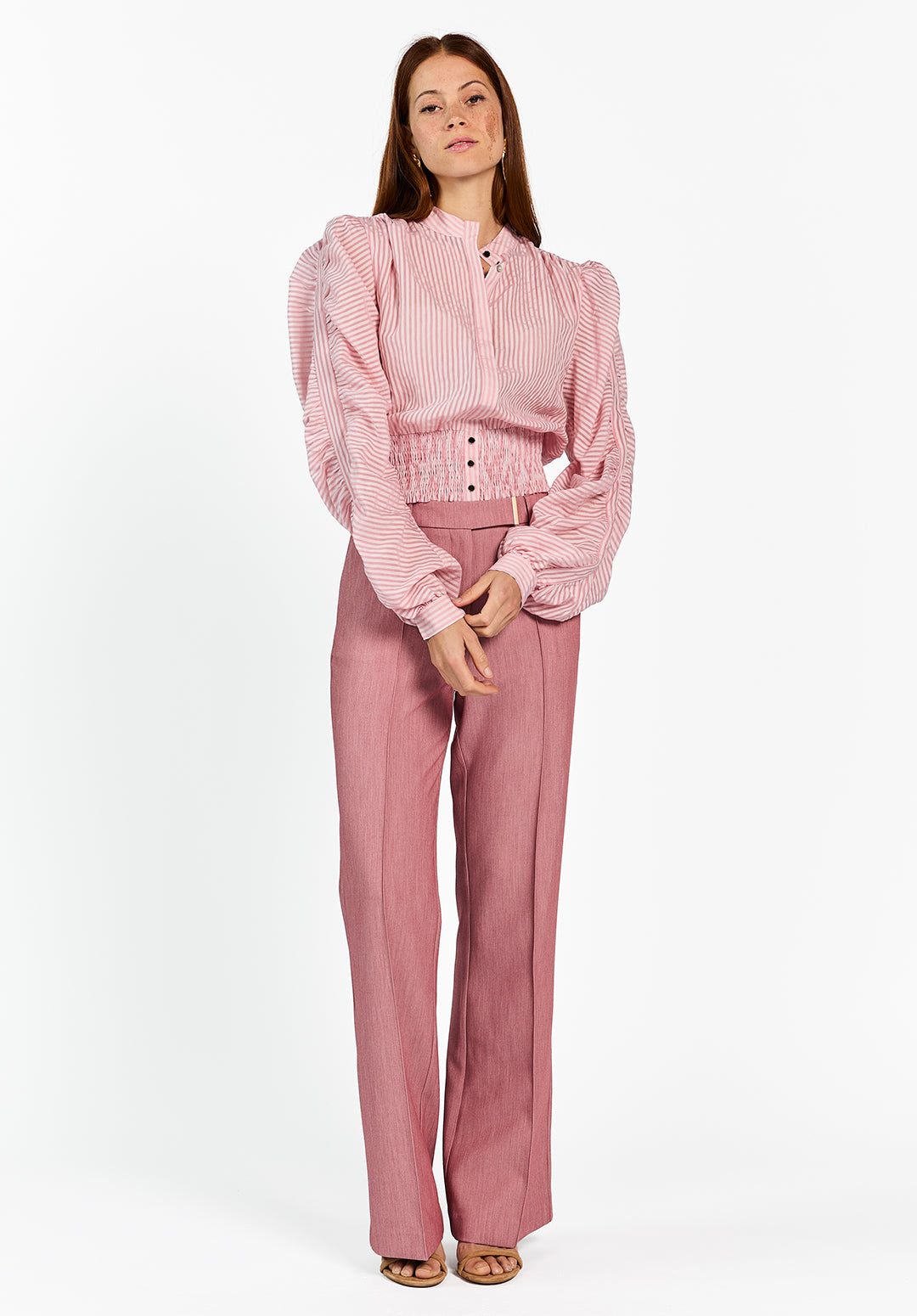 The Beaudine Blouse has a feminine look with a modern edge. The striped texture and voluminous sleeves add character to the silhouette, while the smocked waist creates a flattering fit. The lightweight fabric is comfortable to wear and moves smoothly with you. Pair it with the Chantalle Trousers for a streamlined look that's suitable for both work and dinner.