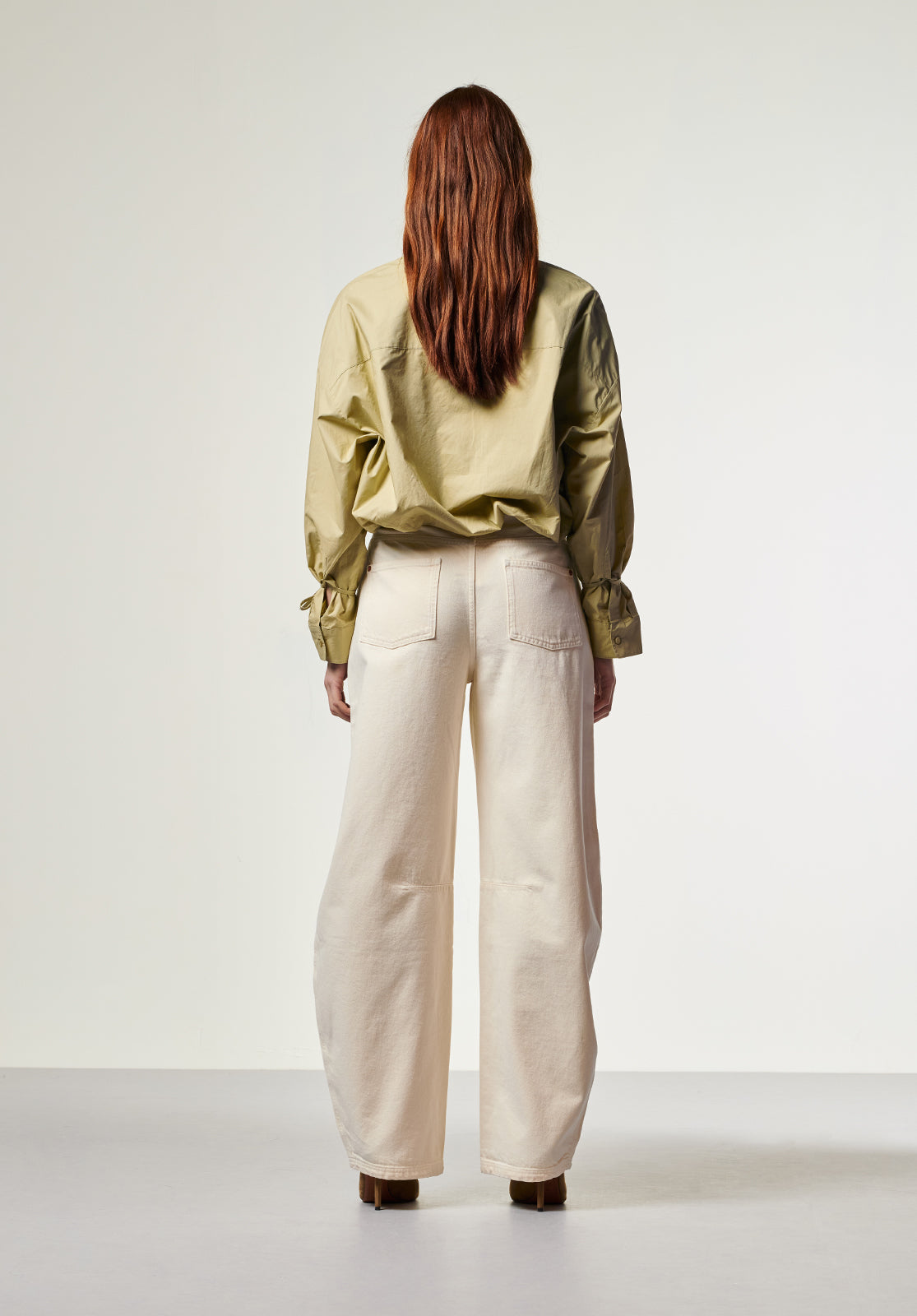 The Mikkie Blouse is a modern classic with a rugged edge. The oversized fit and chest pocket give it a casual look, while the tie-detail sleeves add a refined touch. Made from durable cotton that retains its shape beautifully. Pair with the River trousers for a bold, everyday look.