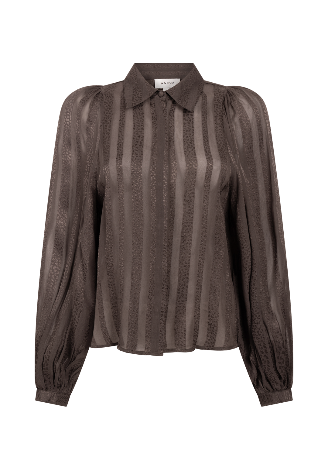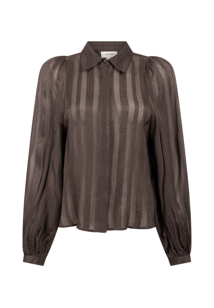 The Rose Blouse is crafted from a sheer fabric featuring playful vertical stripes. The subtle shimmer within the stripes creates an elegant interplay of light and movement. With its classic collar and feminine puff sleeves, this blouse effortlessly transitions from office-ready to dinner-date chic. Pair it with the Chantalle trousers for a polished look.