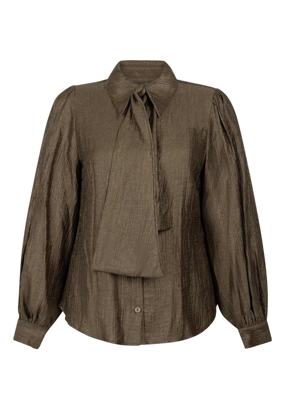 The Veronne Blouse is a timeless, feminine piece with elegant detailing. Designed with a flowing silhouette and subtle balloon sleeves, it features a chic scarf at the neck that can be tied in a relaxed bow or styled for a more classic look. Crafted from a softly shimmering fabric, this blouse pairs beautifully with tailored trousers and loafers for a sophisticated everyday outfit.