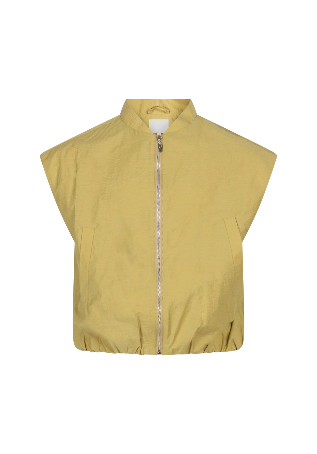 The Vanja gilet is a sleeveless jacket with a sporty edge. The stand-up collar, bold zip closure, and straight fit give it a cool, modern look. The lightweight fabric has a smooth finish, while the elasticated hem allows you to wear it slightly flared. Pair it with the Rikki shorts for a playful, coordinated outfit.