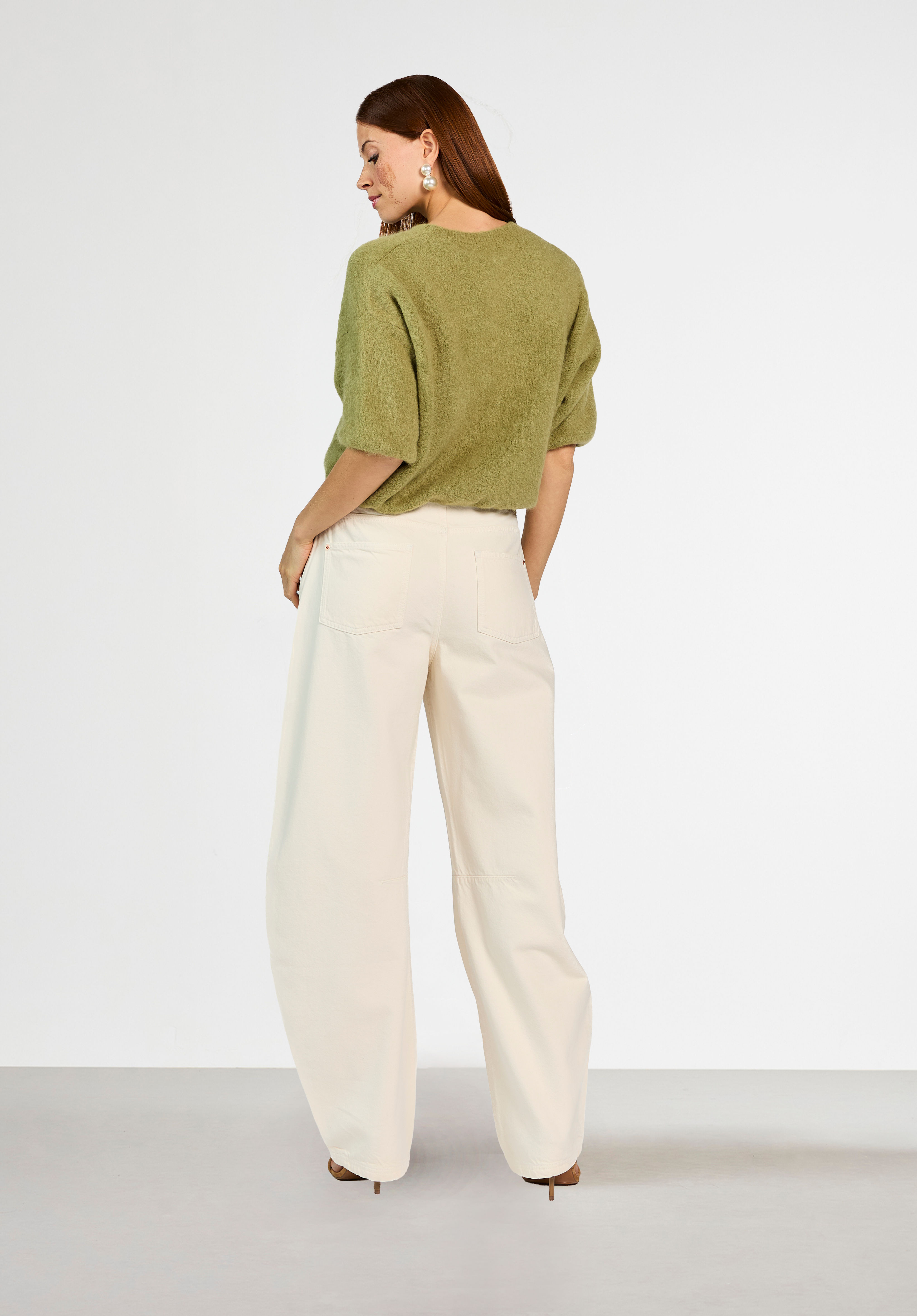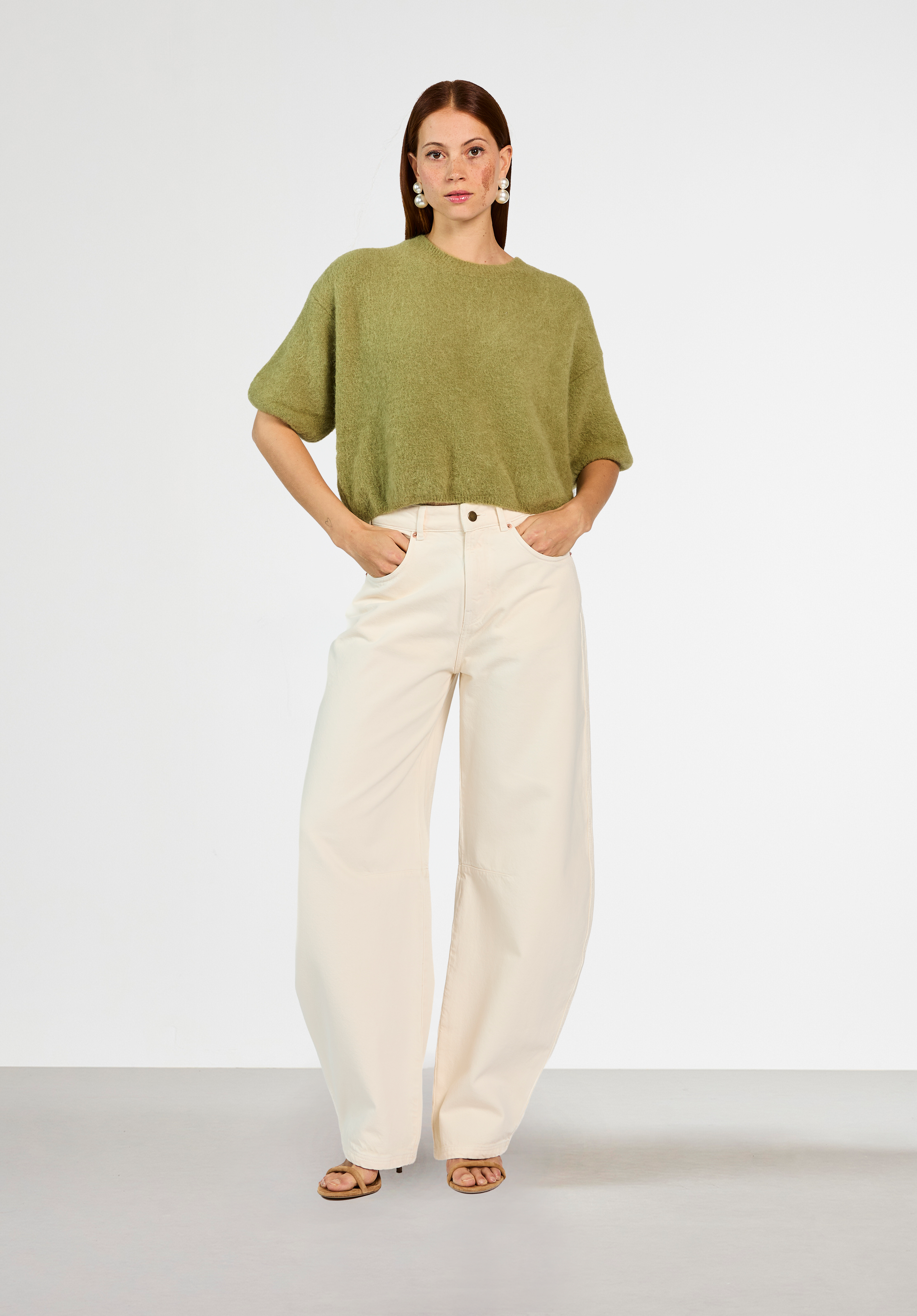 The Lani Knit is a soft sweater with a relaxed fit and half-length sleeves, perfect for in-between seasons. The slightly fluffy knit adds a cozy texture while keeping the look refined. Designed with a round neckline and dropped shoulders for an effortless silhouette. Pair it with the Sacha barrel jeans for an easygoing, casual look.