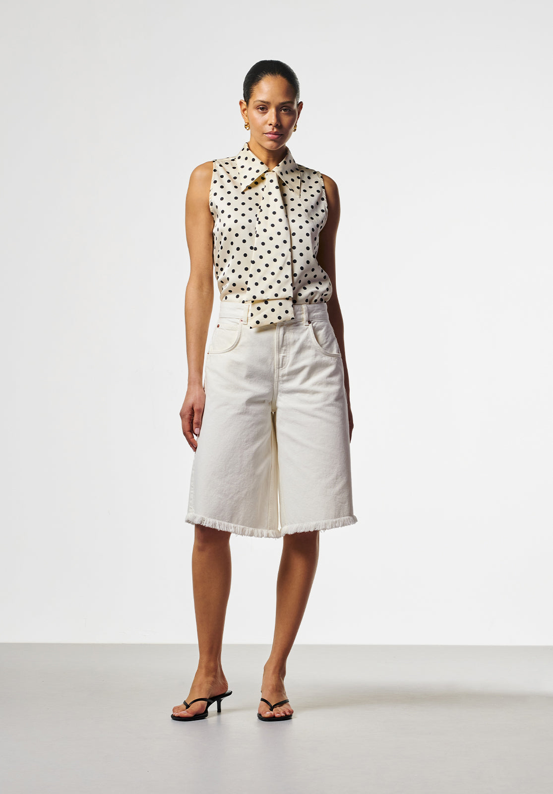 - Subtle frayed hem