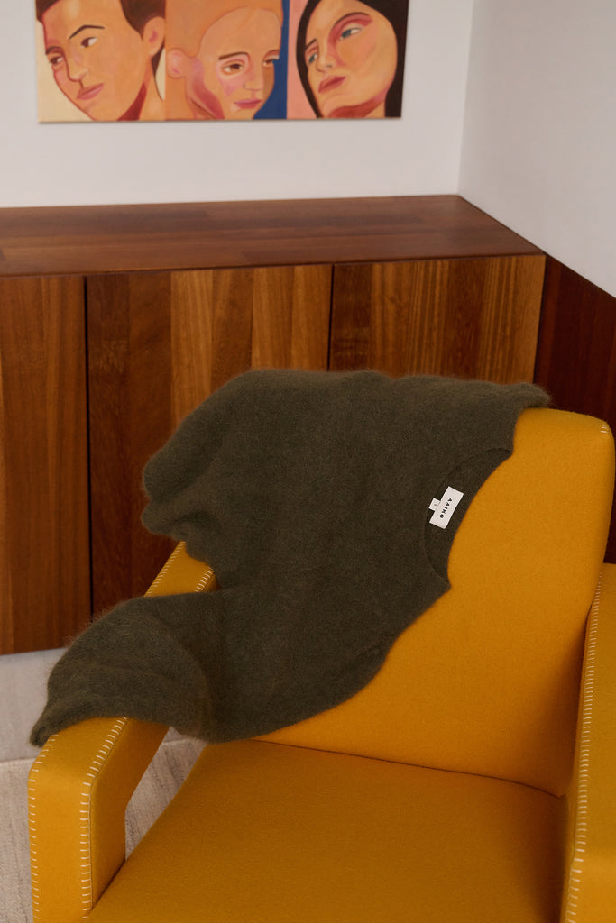 The iconic Denize sweater is a true favorite from the Aaiko collections. This version comes in a rich moss green and is crafted from a soft, fluffy fabric that instantly brings warmth and comfort. The subtle puff sleeves add a feminine edge, while the round neckline and comfortable fit make it an easy go-to. Available in multiple colors. Perfectly pairs with the Quinn trousers.