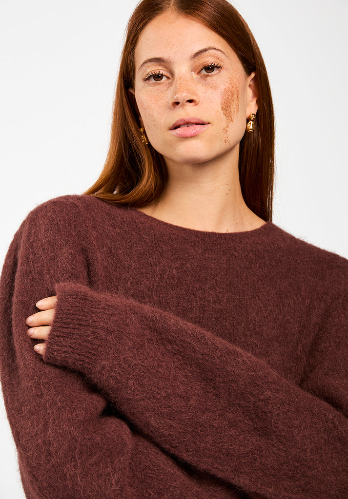 The iconic Denize sweater is a standout piece from the Aaiko collection. A true favorite, available in a variety of colors. Its soft, fluffy fabric and warm feel make it a wardrobe essential. The subtle puff sleeves add a playful touch, making the Denize perfect for both casual and chic looks.