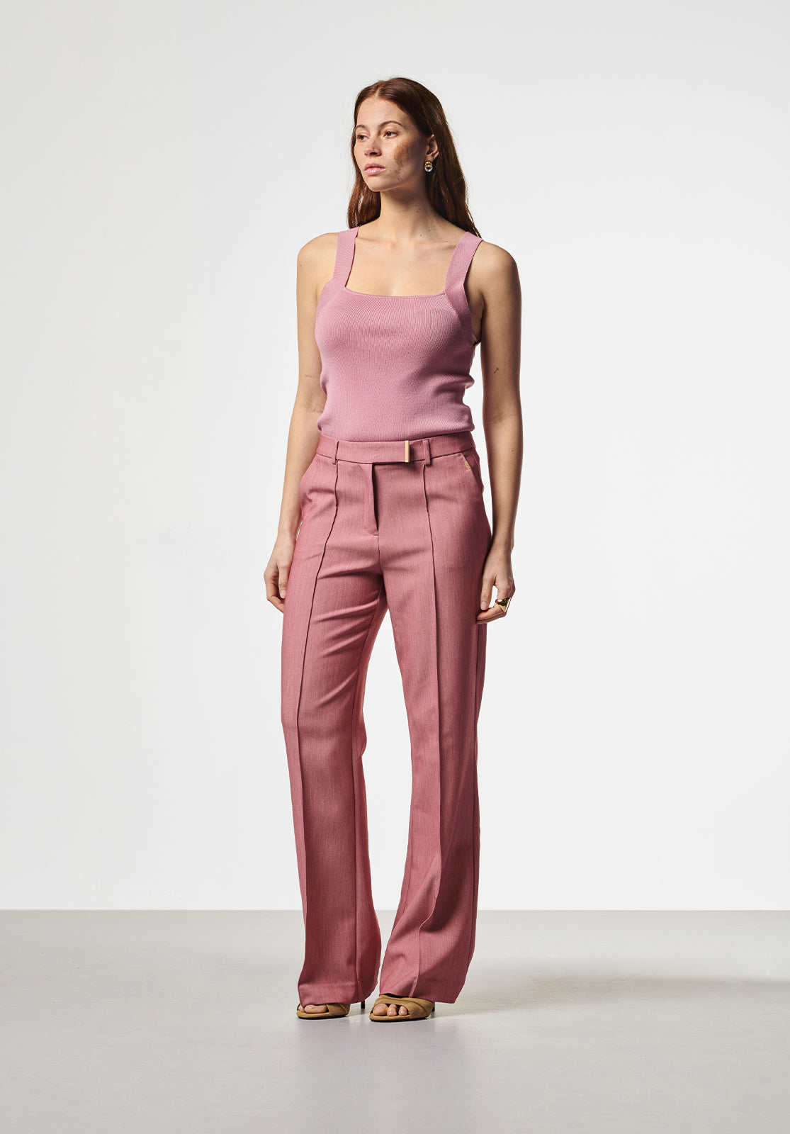 De Zena Top is een mouwloze knit top met een rechte halslijn en brede bandjes. De aangesloten fit accentueert je silhouet op een subtiele manier. Door de stevige ribstructuur blijft de top mooi in vorm, wat ‘m perfect maakt voor zowel gelaagde looks als solo. Combineer met de Harper broek.