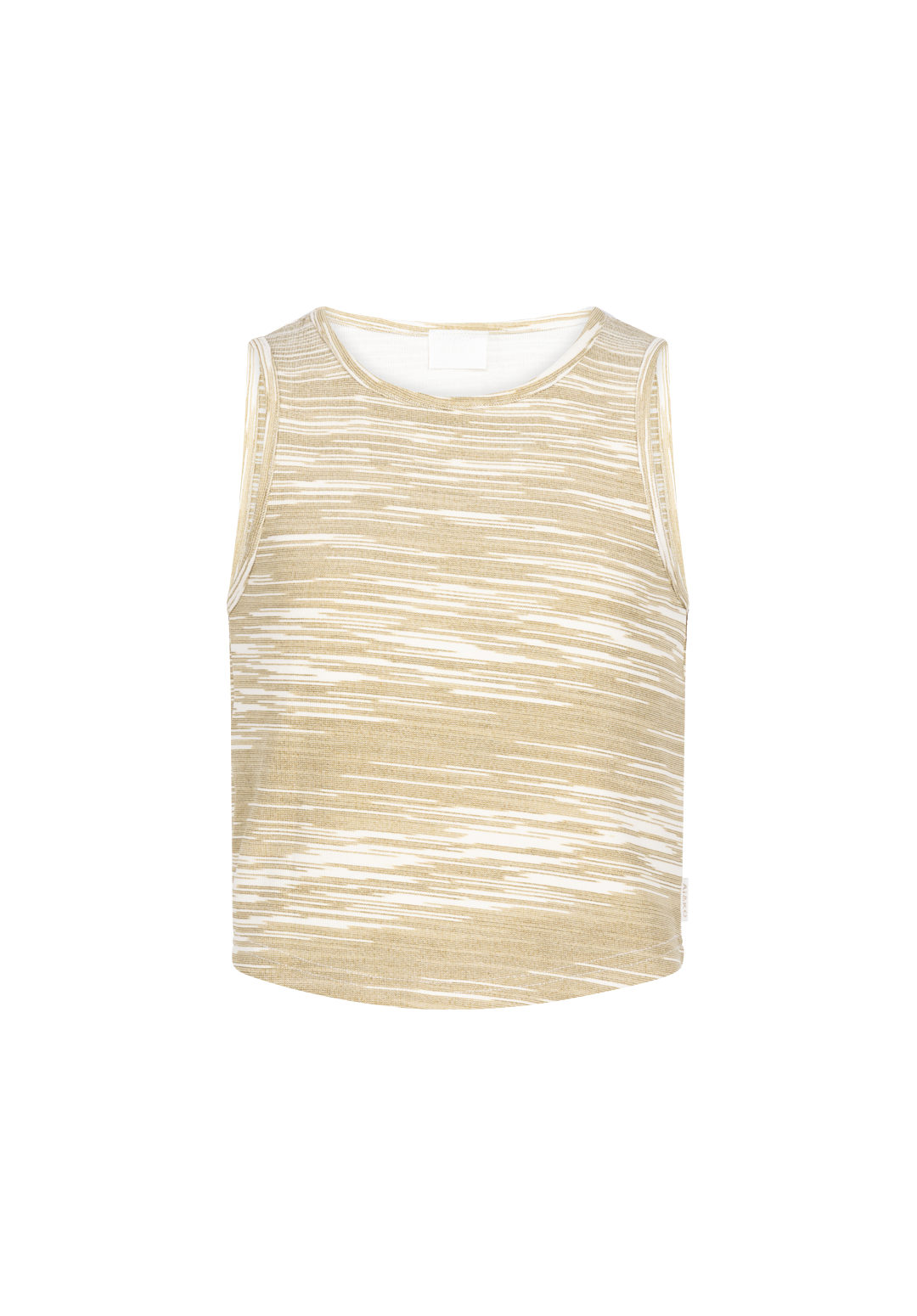 The Daira top is a sleeveless design with a playful yet refined feel. The fabric features a subtle texture with irregular stripes, adding an elegant touch. Its close-fitting silhouette and round neckline make it a versatile piece that’s easy to style for any occasion.