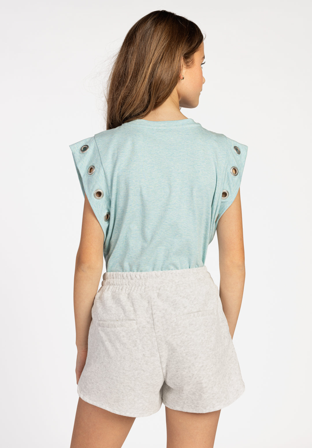 The Cora t-shirt is a versatile item with a striking design. The flying sleeves with ring details give the shirt a cool look. Made of soft and comfortable fabric, this t-shirt is easy to combine with jeans, shorts or a skirt.