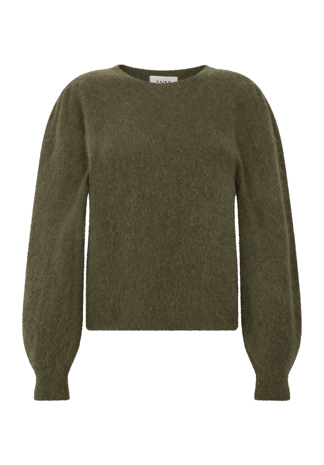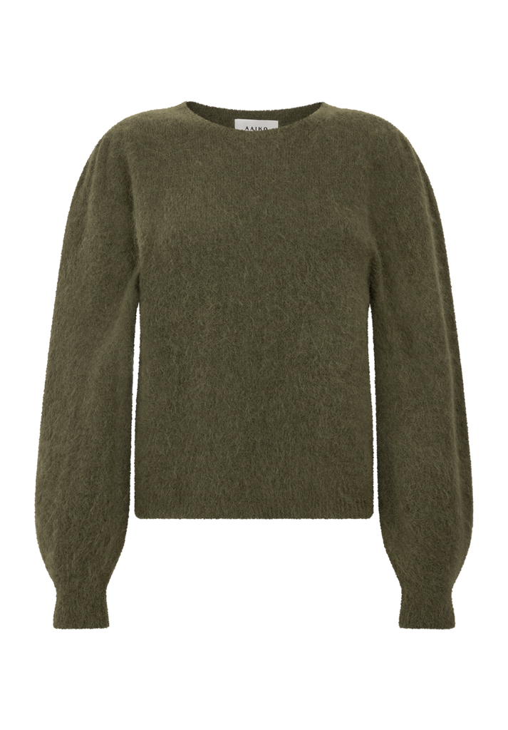 The iconic Denize sweater is a true favorite from the Aaiko collections. This version comes in a rich moss green and is crafted from a soft, fluffy fabric that instantly brings warmth and comfort. The subtle puff sleeves add a feminine edge, while the round neckline and comfortable fit make it an easy go-to. Available in multiple colors. Perfectly pairs with the Quinn trousers.