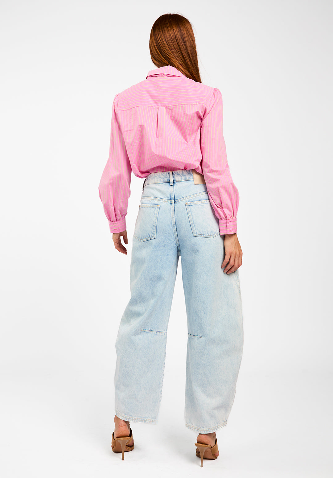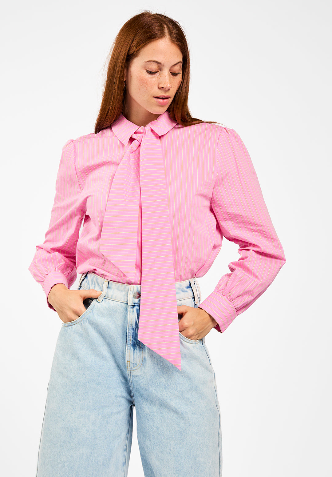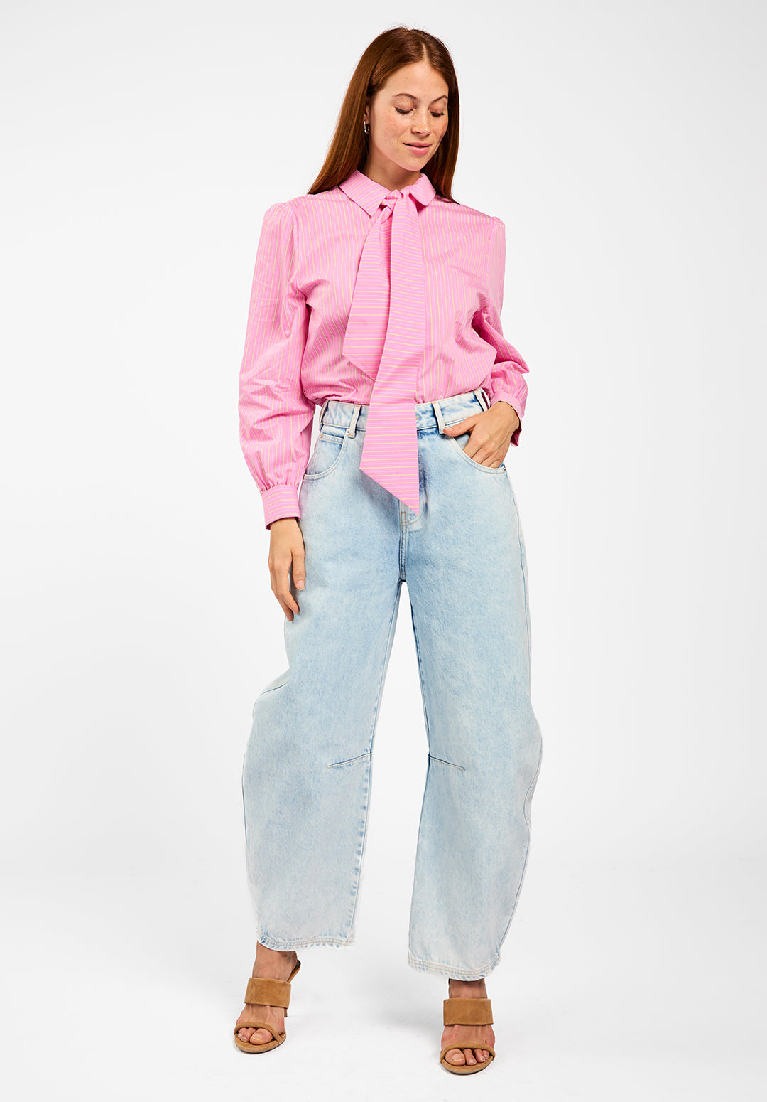 The Fenne Blouse is a feminine classic with a playful twist. Featuring a wide bow at the neck and a subtle stripe pattern, this blouse adds character without being over the top. The softly gathered shoulders and straight fit create a clean silhouette that still feels relaxed. Made from a lightweight cotton blend, it’s easy to style. Wear it loose or tucked into tailored trousers or a skirt.