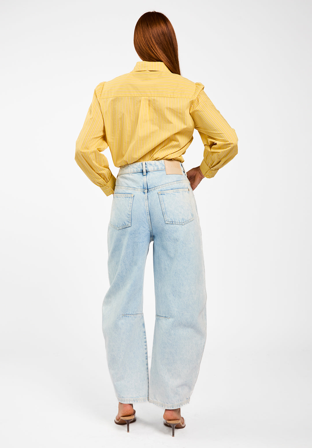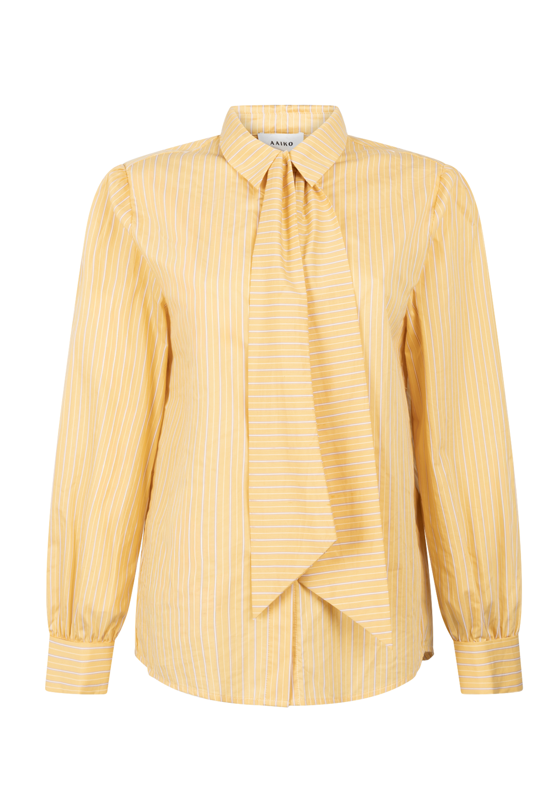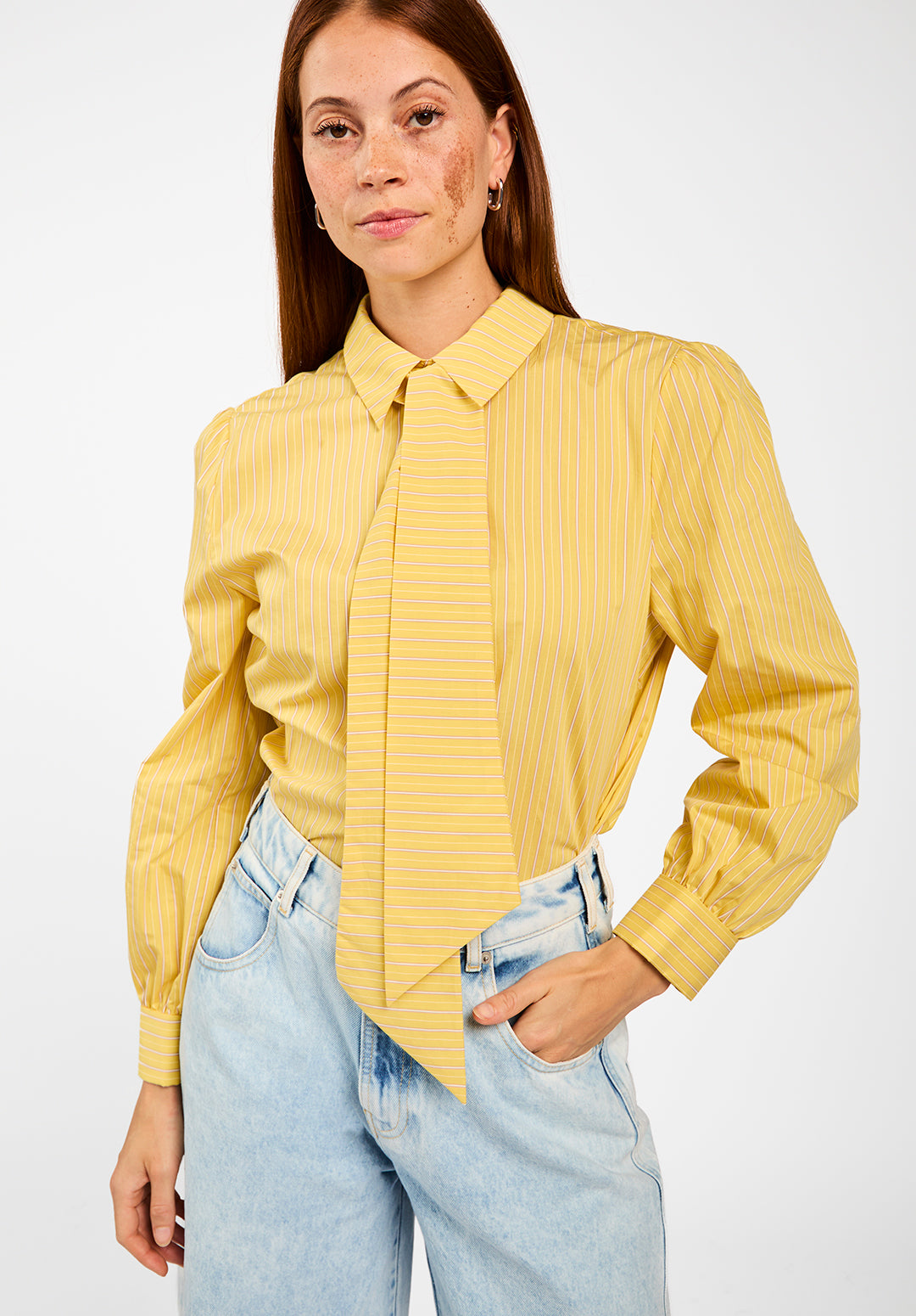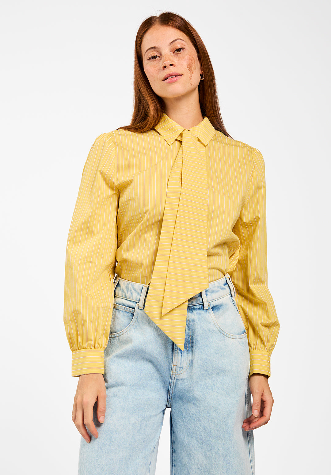 The Fenne Blouse is a feminine classic with a playful twist. Featuring a wide bow at the neck and a subtle stripe pattern, this blouse adds character without being over the top. The softly gathered shoulders and straight fit create a clean silhouette that still feels relaxed. Made from a lightweight cotton blend, it’s easy to style. Wear it loose or tucked into tailored trousers or a skirt.