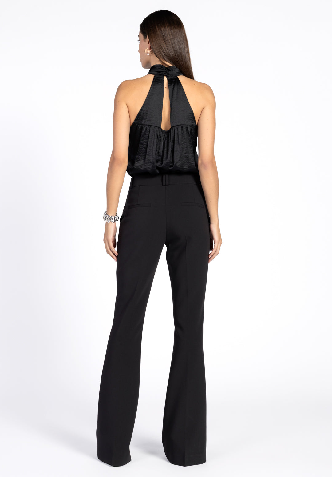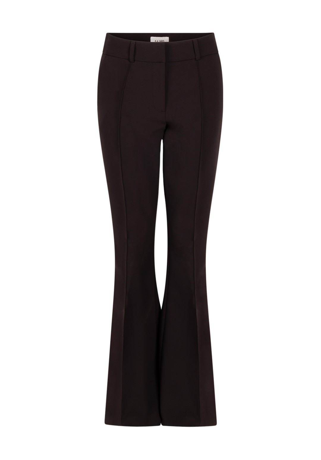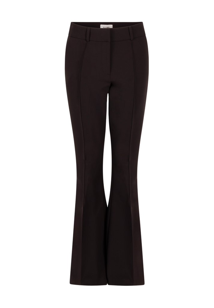 The Glenn Trousers feature a flattering high waist with flared legs that create a sleek, elongated silhouette. Vertical seams add extra length, making them a perfect choice for both office wear and evening plans. Crafted from a firm stretch fabric, they ensure comfort while keeping their shape. Pair them with the Irisa top for a complete look.