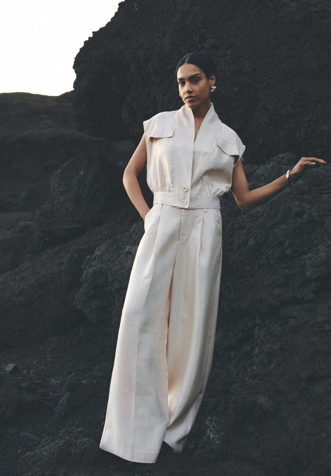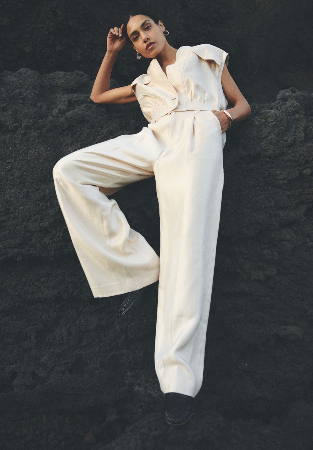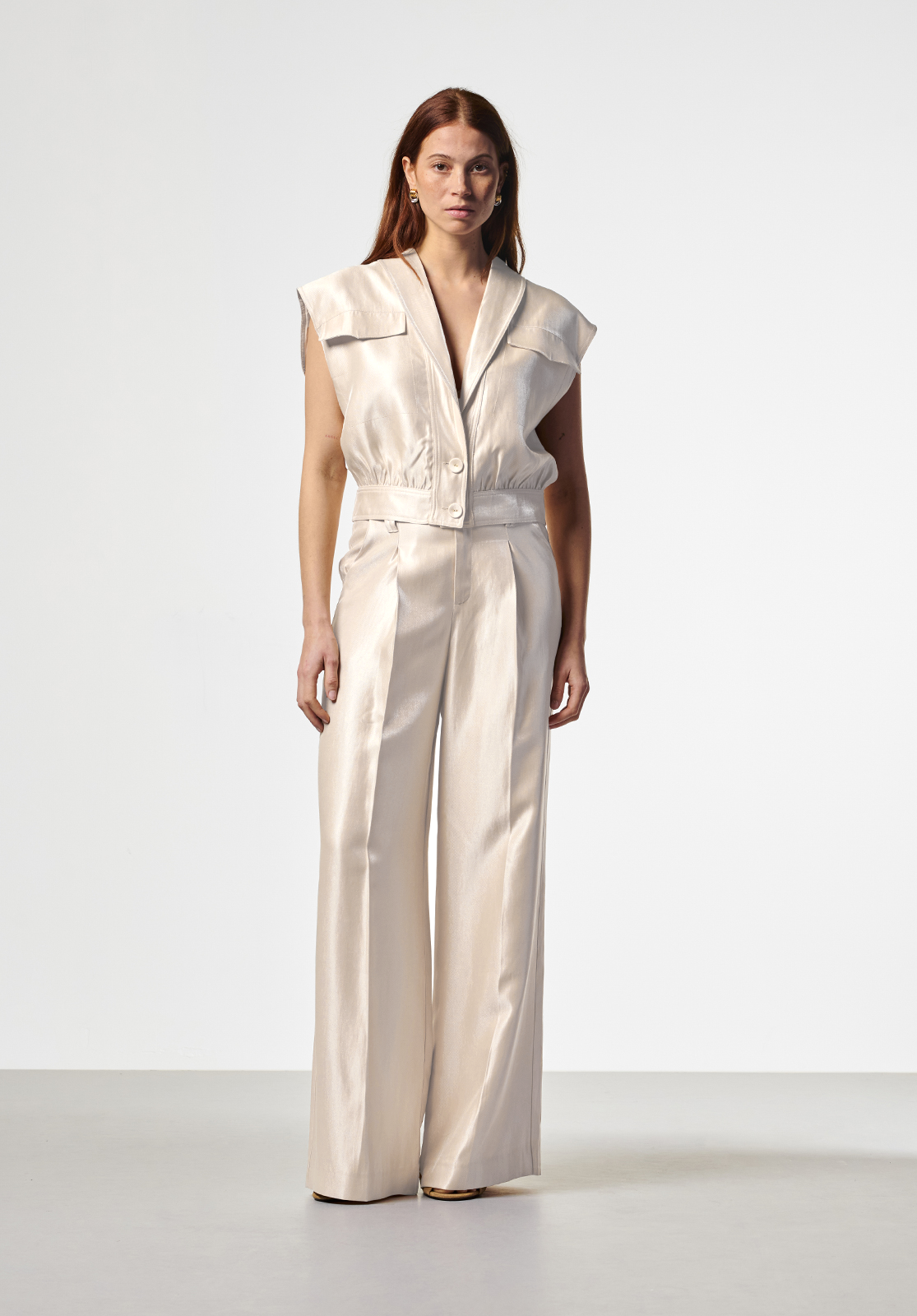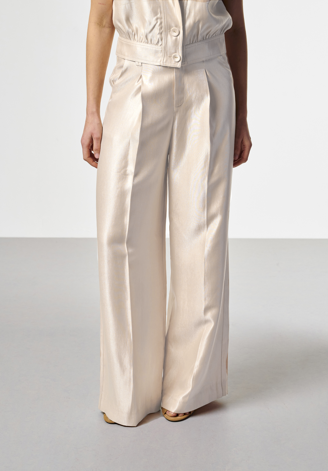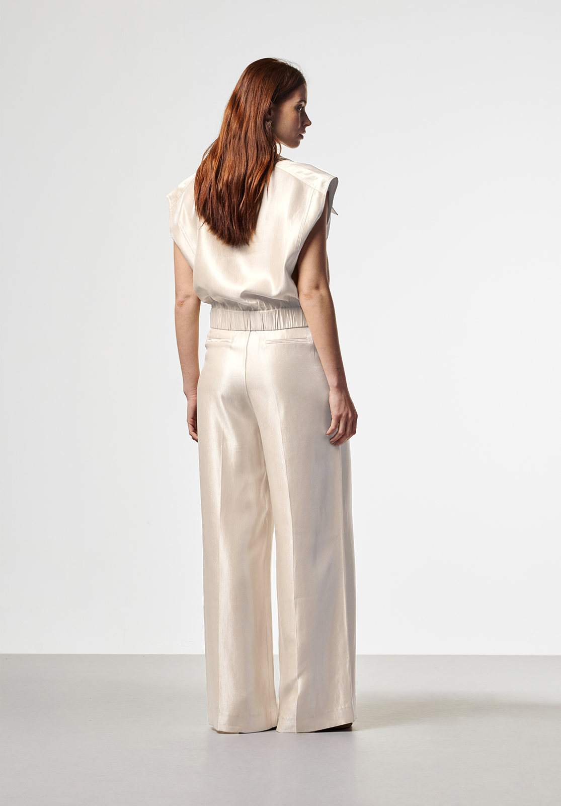 These trousers have an elegant and minimalist look and are a true essential for a sophisticated wardrobe. Perfect for both a chic and casual look, depending on how you style them. The flowing fabric and wide legs ensure an effortlessly stylish fit.