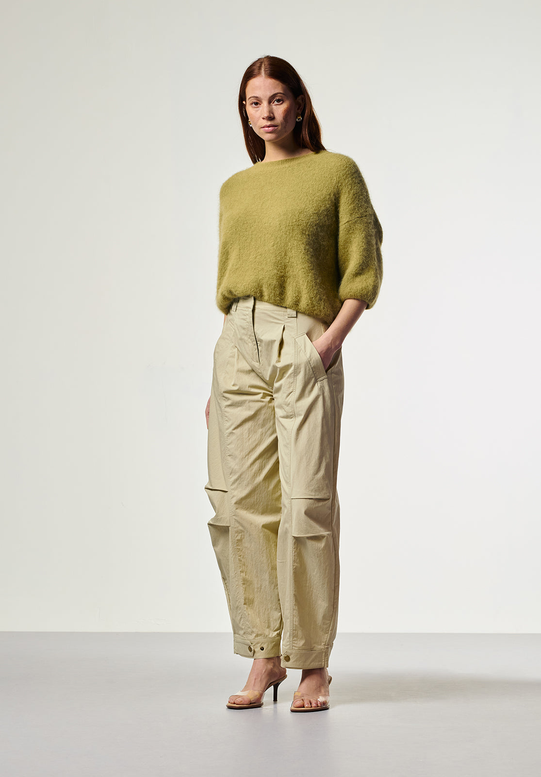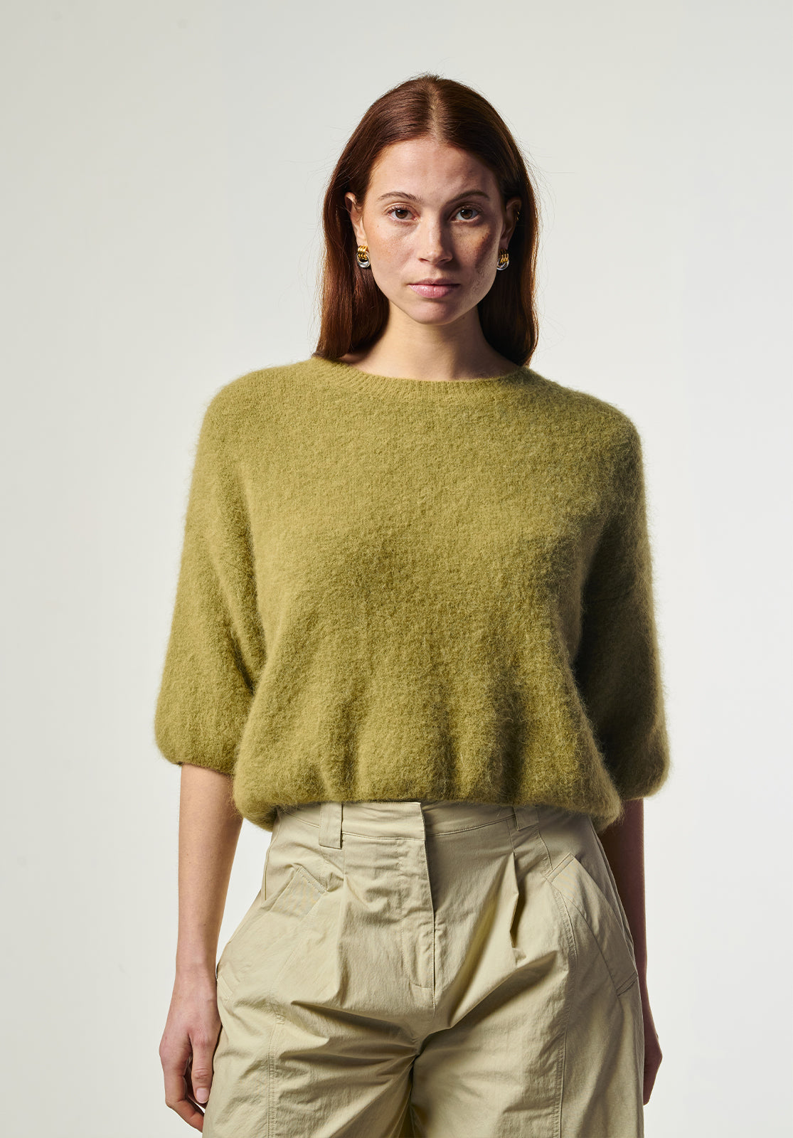 The Lani Knit is a soft sweater with a relaxed fit and half-length sleeves, perfect for in-between seasons. The slightly fluffy knit adds a cozy texture while keeping the look refined. Designed with a round neckline and dropped shoulders for an effortless silhouette. Pair it with the Sacha barrel jeans for an easygoing, casual look.