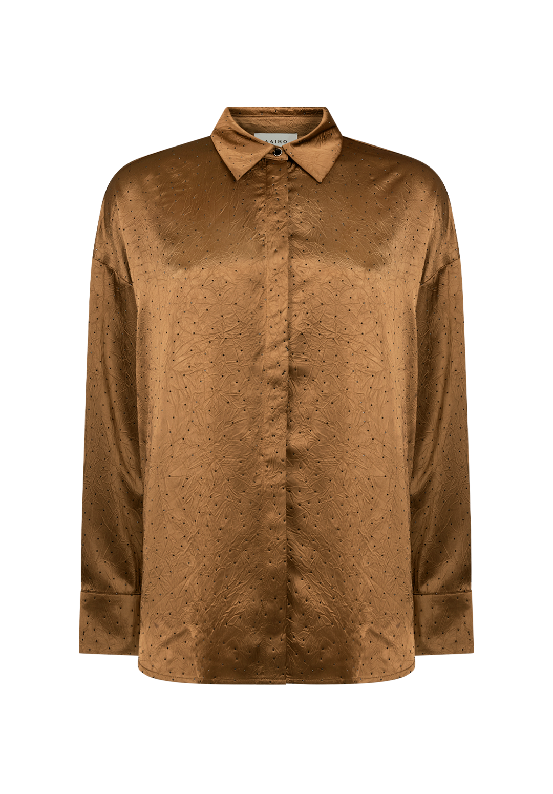 The Violet blouse features a subtle sheen and a polka dot pattern. It's loose-fitting at the armpits and sleeves. Pair it with Lano shorts for a festive look, or opt for office chic with Philippa trousers.